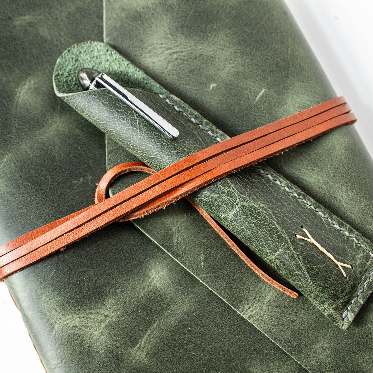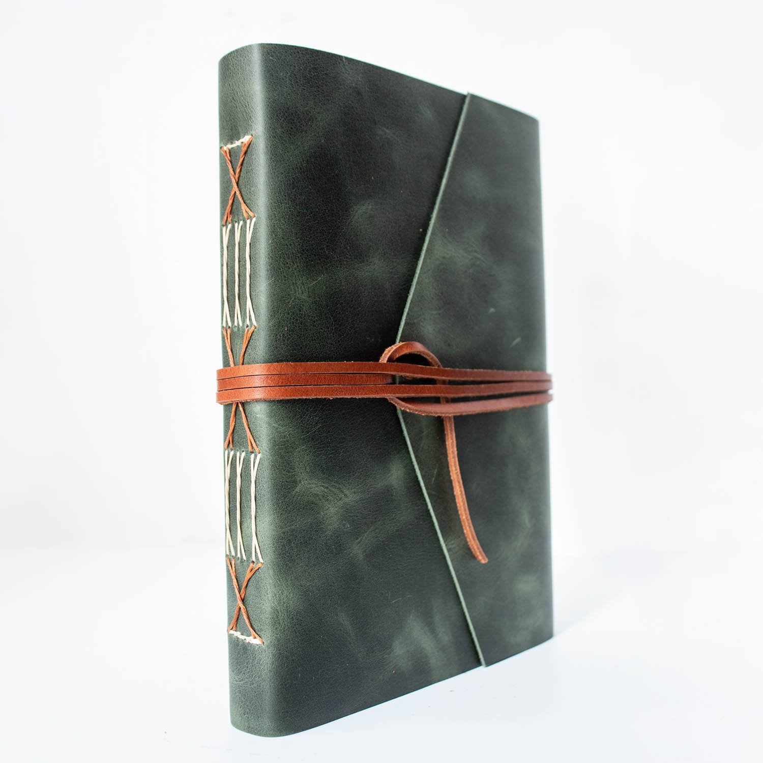Cevher A5 Büyük Boy Deri Defter / Biye Şeritli