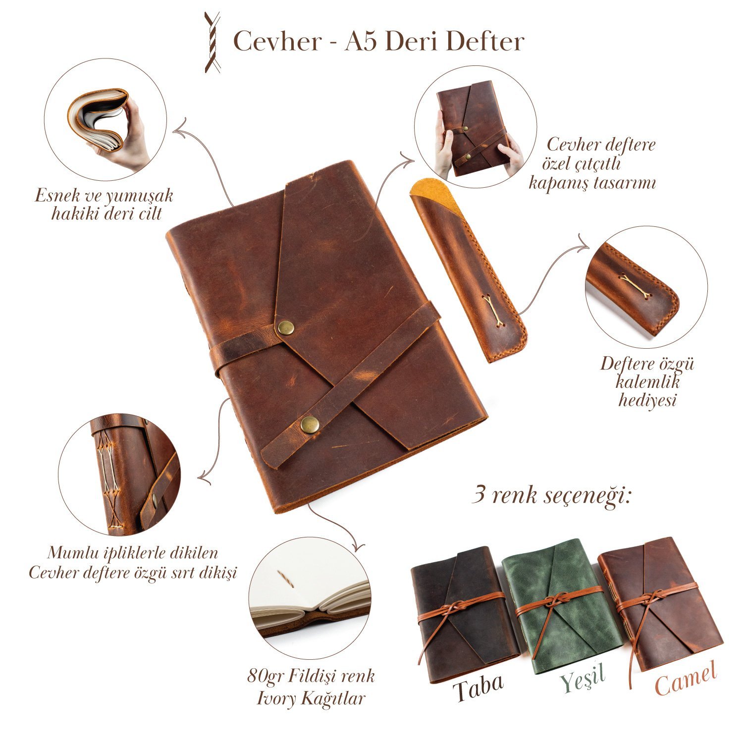 - Cevher deri defter tamamen el yapımıdır.