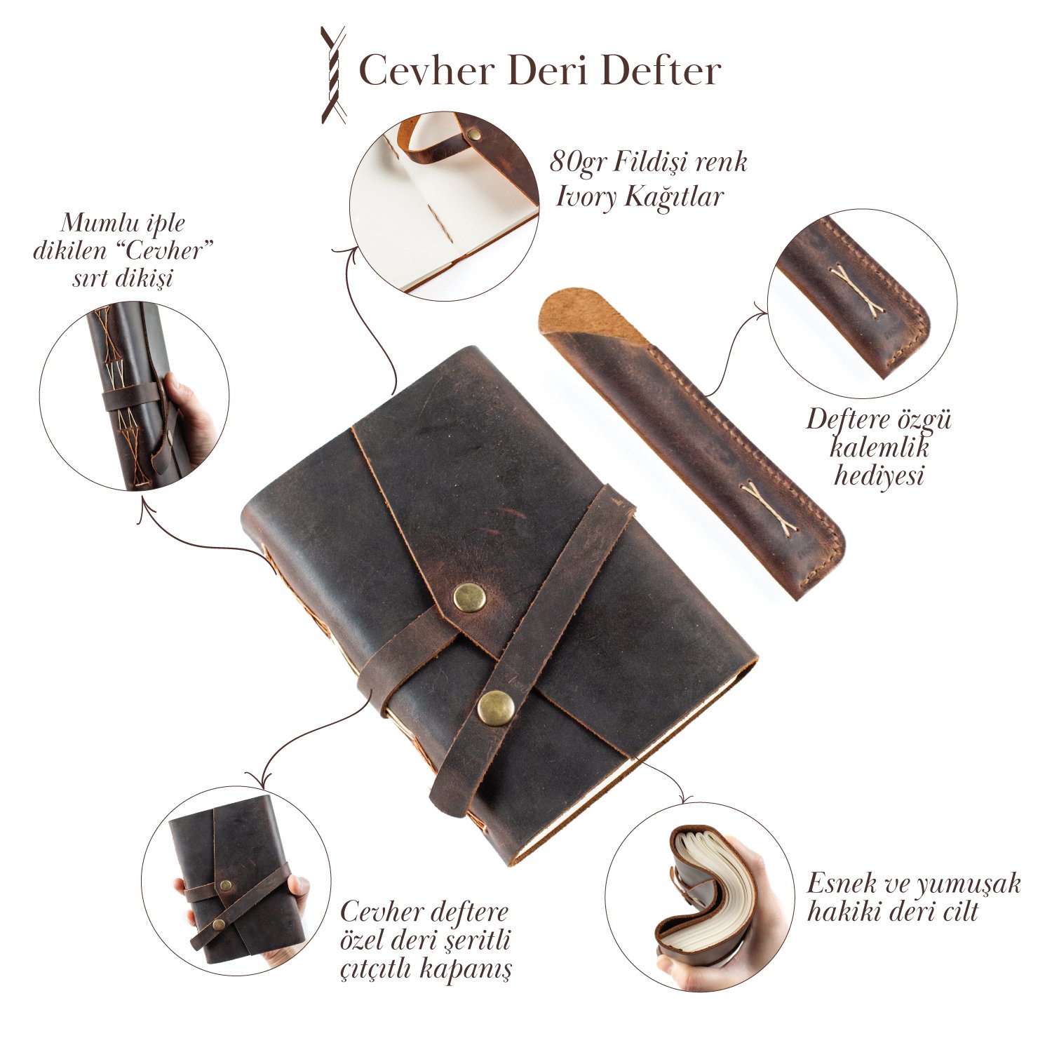 - Cevher deri defter tamamen el yapımıdır.