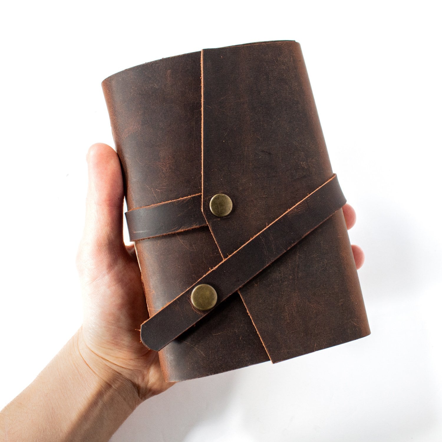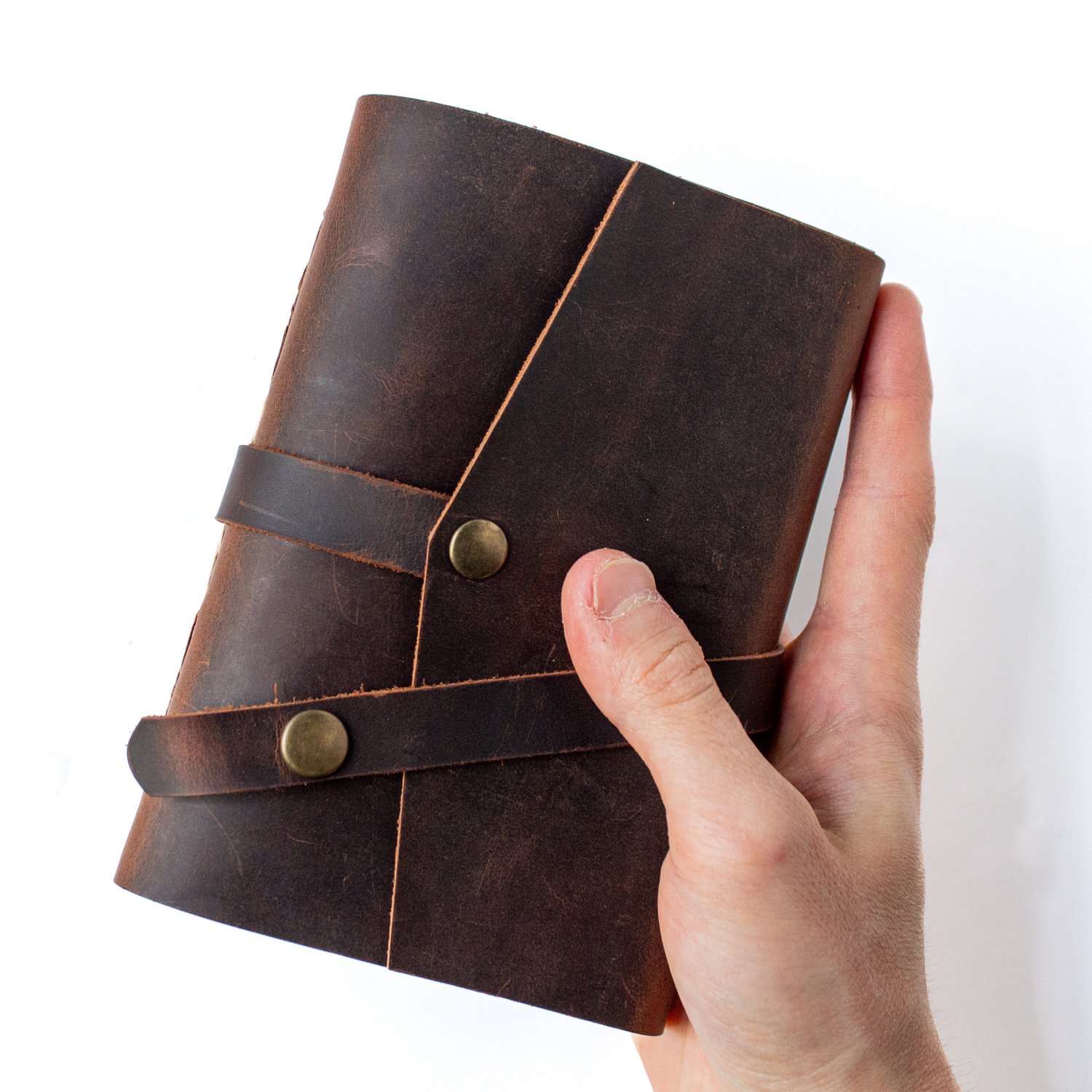 Cevher - A6 Orta Boy Deri Defter / Çıtçıtlı