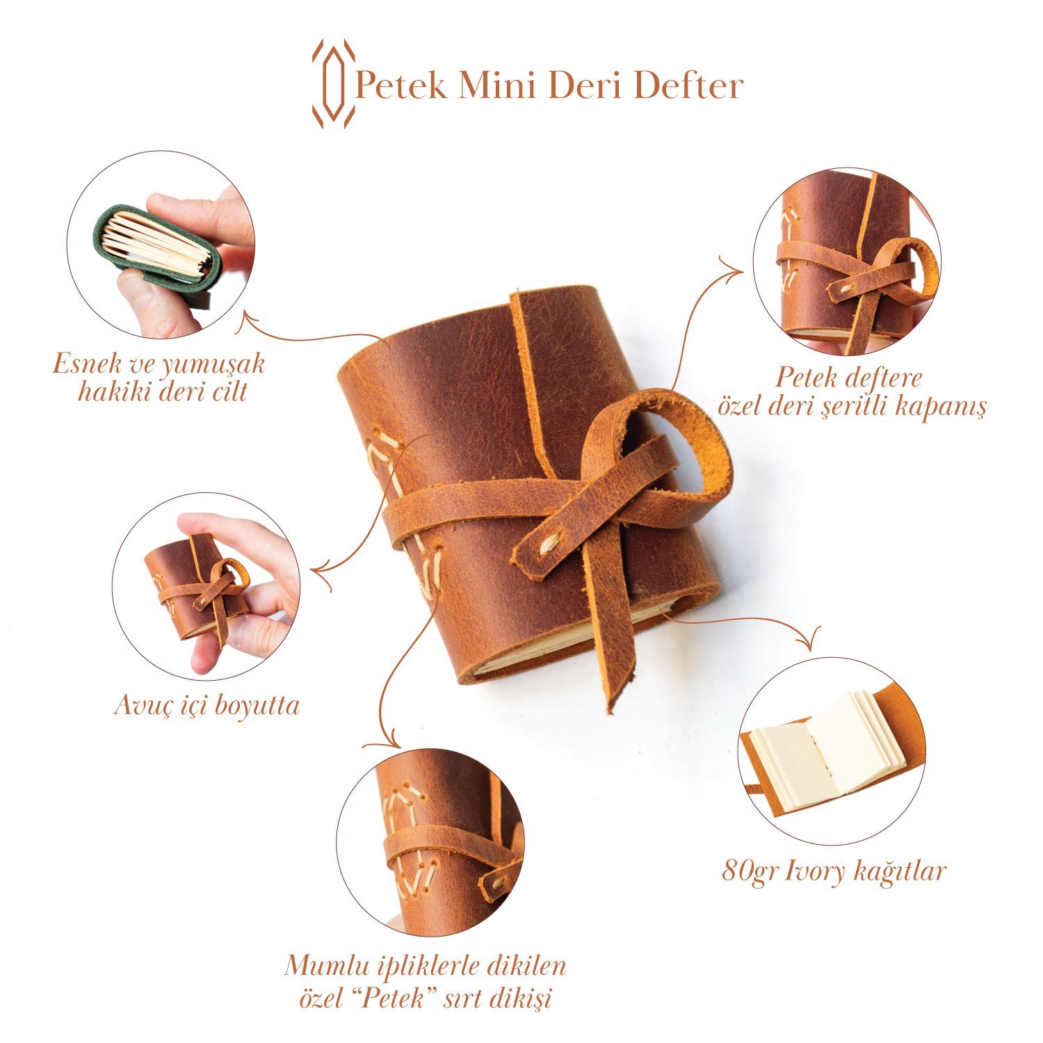 Petek - El Yapımı Küçük Boy / Mini Deri Defter V1